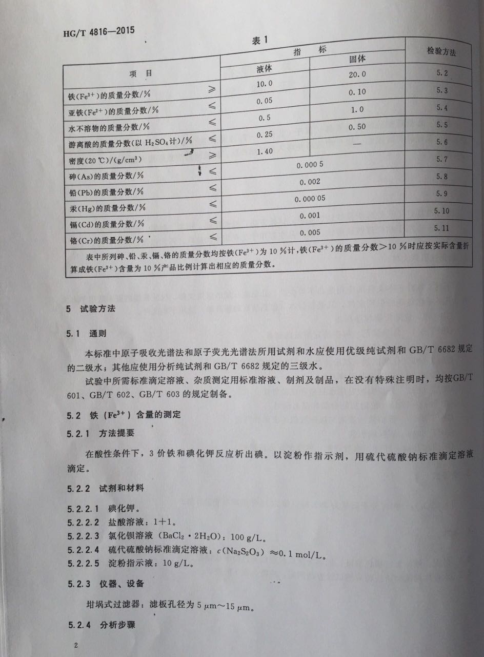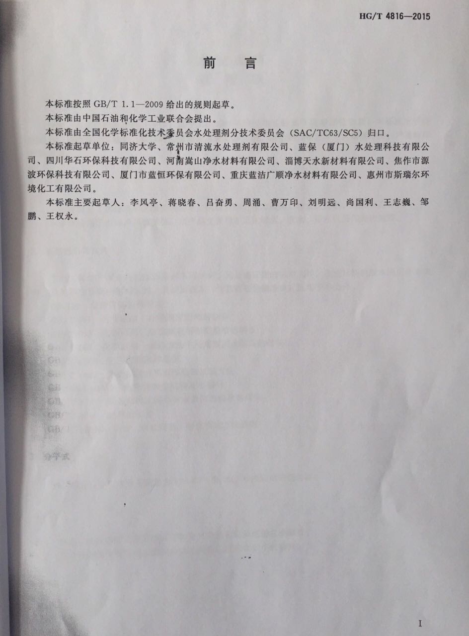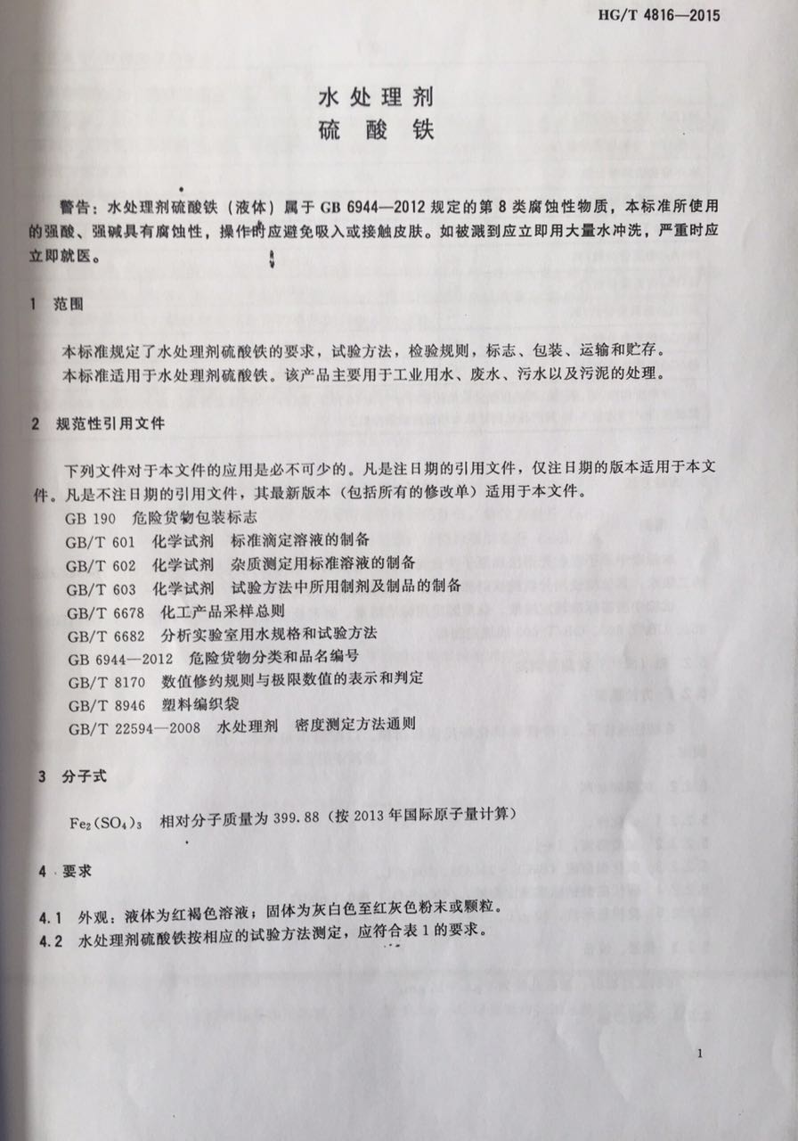 我公司參與定制的《水處理 硫酸鐵》行業(yè)標(biāo)準(zhǔn)